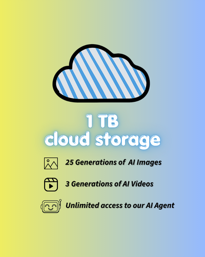 1 TB of cloud storage just for you + 25 AI image generations and 3 AI video generations via the JARVIS interface